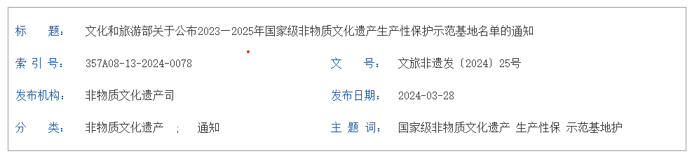 根据《“十四五”非物质文化遗产保护规划》和文化和旅游部等十部门《关于推动传统工艺高质量传承发展的通知》的工作要求,在各地推荐的基础上,经过专家评审、实地考察和社会公示等程序,文化和旅游部认定99家企业和单位为“2023—2025年国家级非物质文化遗产生产性保护示范基地”(以下简称“示范基地”),现予公布(见附件),并就进一步加强示范基地建设工作有关事项通知如下。