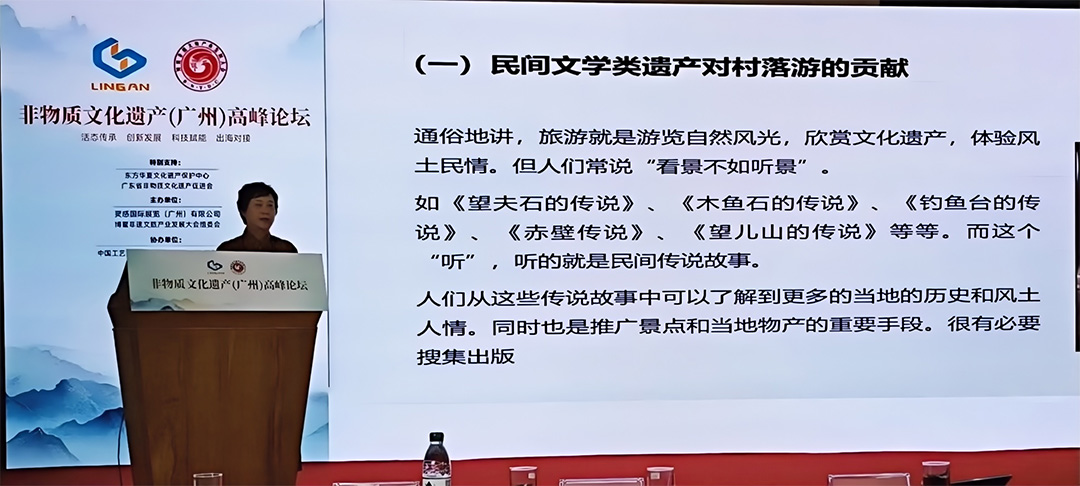 论坛邀请到中国艺术研究院研究员苑利老师、北京联合大学文化遗产研究所所长顾军教授、国际艺术文化奖首位华人得主宾子老师、北京九鼎辉煌旅游发展研究院朱万峰院长、广东开放大学文化传播与设计学院蓝天院长、广州中医药大学针康学院余瑾教授、悉尼科技大学纪毅博士、美国伊利诺伊大学厄巴纳香槟分校王阳博士、台湾中华少数民族艺术文创促进会朱王碧玉理事长等多位非遗大家和专业学者,通过精彩纷呈的专题演讲和主题分享,为非物质文化遗产可持续和产业化发展建言献策。来自全国的广东醒狮、非遗茶百戏、古琴、掐丝珐琅、川剧变脸、广绣等10余项非遗项目穿插演讲和分享之中,将论坛一次又一次地推向高潮。