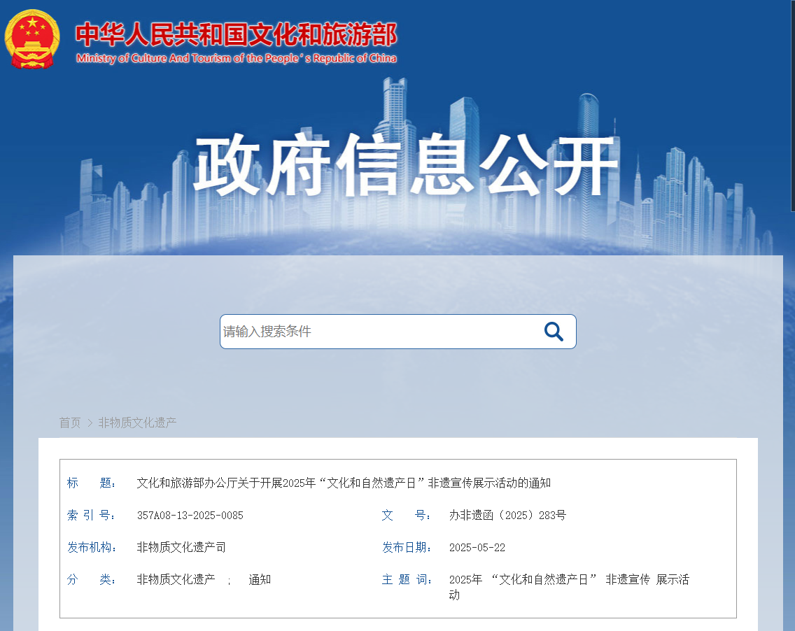 6月14日是今年的“文化和自然遗产日”。为全面贯彻落实习近平总书记关于非物质文化遗产(简称“非遗”)保护工作的重要指示精神,进一步提高全社会非遗保护传承意识,现就2025年“文化和自然遗产日”非遗宣传展示活动有关事项通知如下。