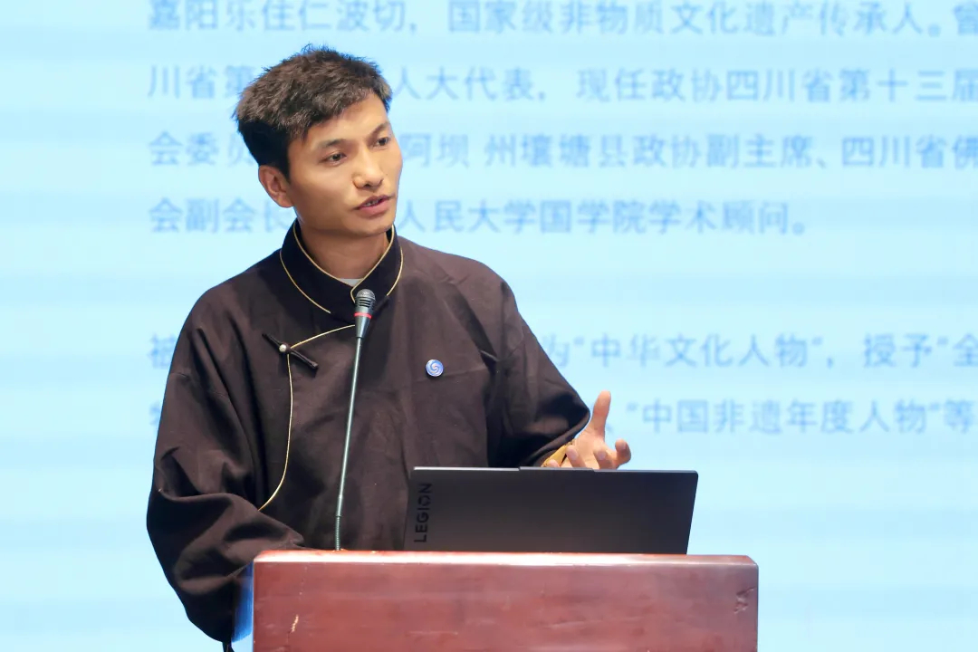 壤巴拉非遗传习协会会长桑州以“循律明新——非遗艺术传承人才培养的探索”为主题分享了壤塘传习所取得的各项成果,以及在青年人才培养和非遗IP打造方面的经验。