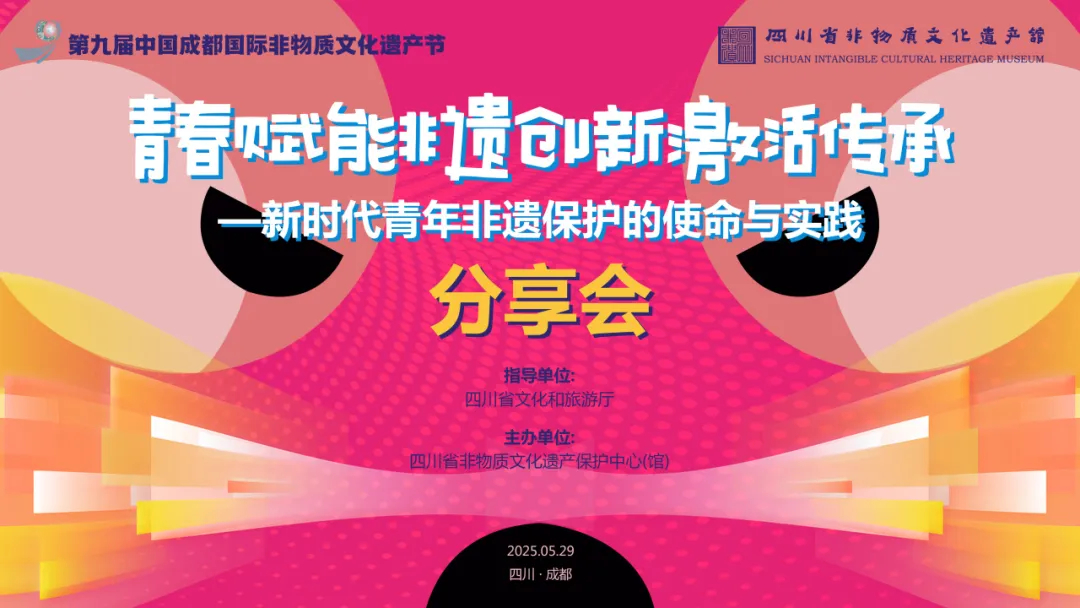 2025年5月29日,由四川省文化和旅游厅指导,四川省非物质文化遗产保护中心(馆)主办的“青春赋能非遗创新激活传承——新时代青年非遗保护的使命与实践”分享会在四川省非物质文化遗产馆举办。本次分享会以“青年与非遗”和“AI+非遗”为主题,分别在上午场和下午场进行,深入探讨了青年力量与非遗传承、AI技术与非遗创新的双向联动中面临的机遇与挑战,为非遗在青年赋能、科技融合维度的发展提供了创新路径。中国非物质文化遗产保护中心副主任郝庆军出席分享会并对活动进行了总结,四川省非物质文化遗产保护中心(馆)主任李琳、相关省(市)、市州非遗保护中心负责人、青年非遗传承人代表、业内专家、高校代表、知名设计师、合作企业代表等参加会议。