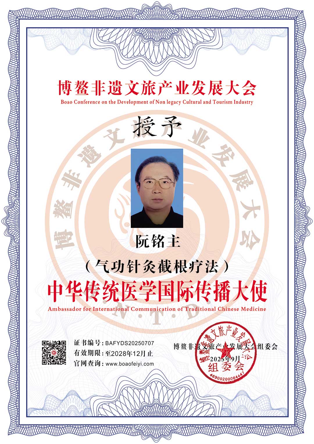 荣誉证书 阮铭主 作者: 博鳌非遗组委会 时间: 2025-10-15 16:09 阅读: 32669 次 字体大小: 小 中 大 点赞 (0) 分享 微博 QQ 微信 扫码分享 ← 上一篇 速海萍 下一篇 → 张婷燕